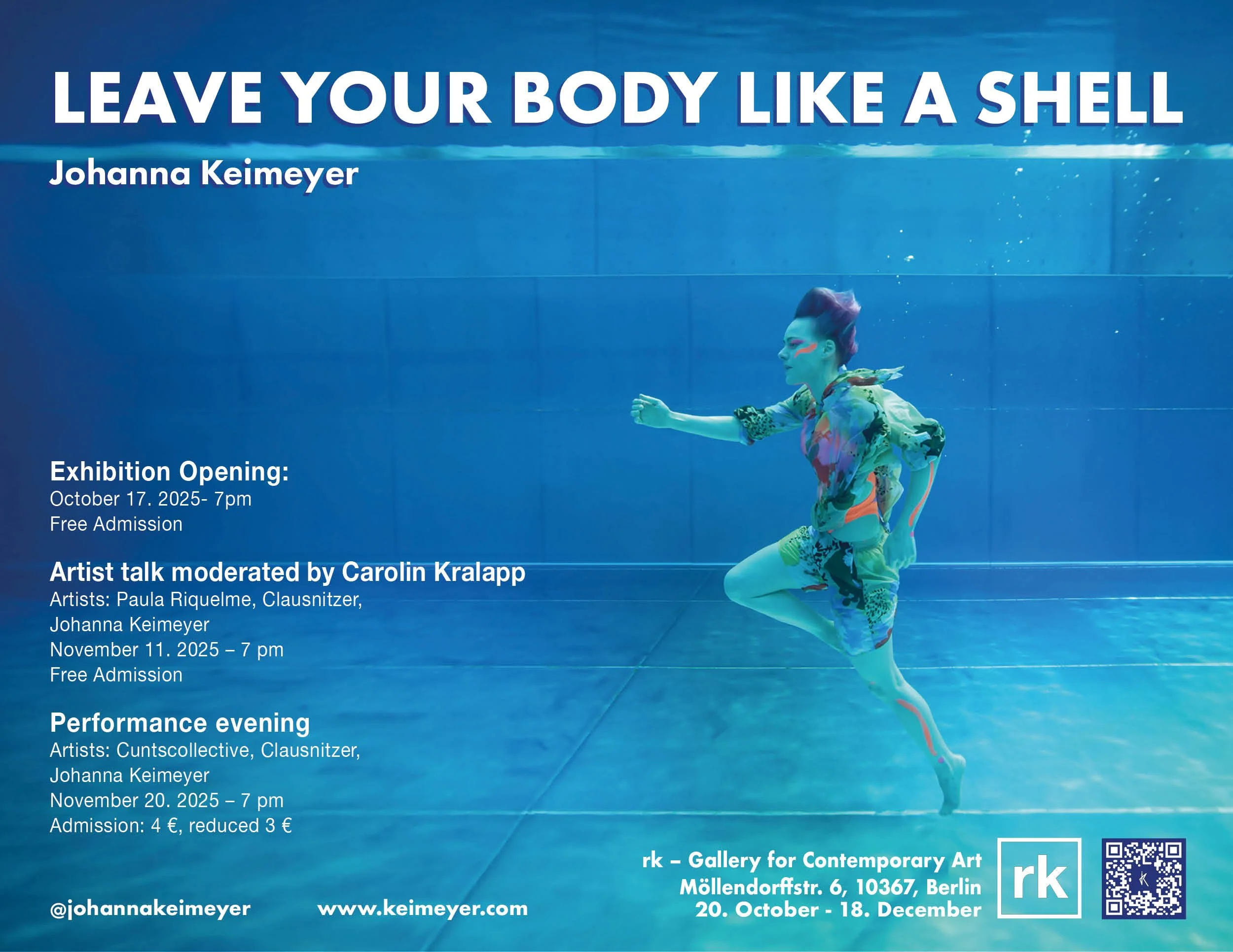 Berlin-based artist Johanna Keimeyer presents her underwater film, LEAVE YOUR BODY LIKE A SHELL, and the photography series: “Bare Elements - Ice & Fire” at RK Gallery for Contemporary Art. The exhibition opens on October 17, 2025.